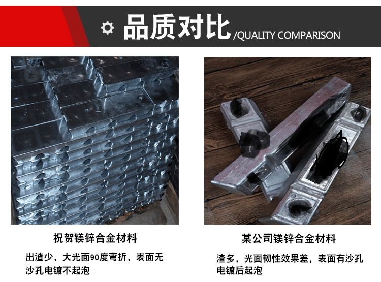 无铅镁锌合金 优点: 1.高韧性,做出来产品可以反复弯折不会断并且产品硬度够不易变形。 2.熔点低,280度熔点。320度铸造甩模。 3.大光面,可做任何超大光面的产品。